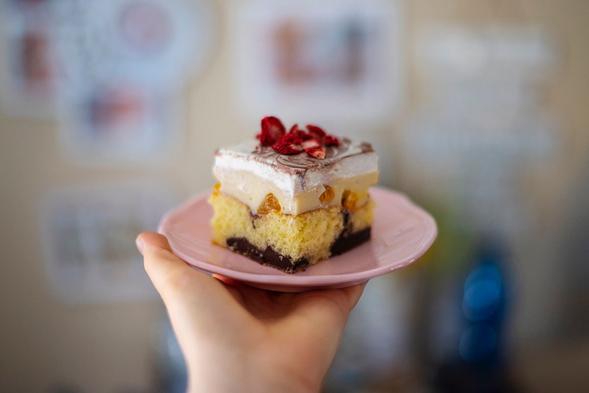 Už dlho sa po žiadnom koláči nezaprášilo tak, ako dnes po tomto. A pritom najviac jednoduchý 🙌🏻 Dva druhy pudingu, mandarínky, navrchu slahacka-kyslá smotana-mascarpone, ganache z bielej a mliečnej čokolády a #babylove sušené jahody 👌😋