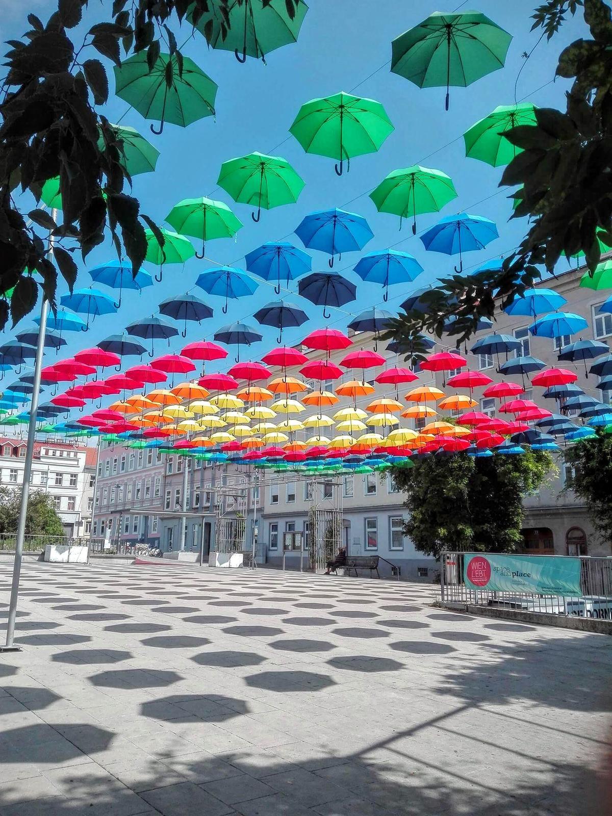 Viedeň nikdy nesklame 💕 Umenie na každom kroku 👍 Úžasná inštalácia s 240 dáždnikmi, ktorá sa venuje téme vnímanie miesta a priestoru 🙂