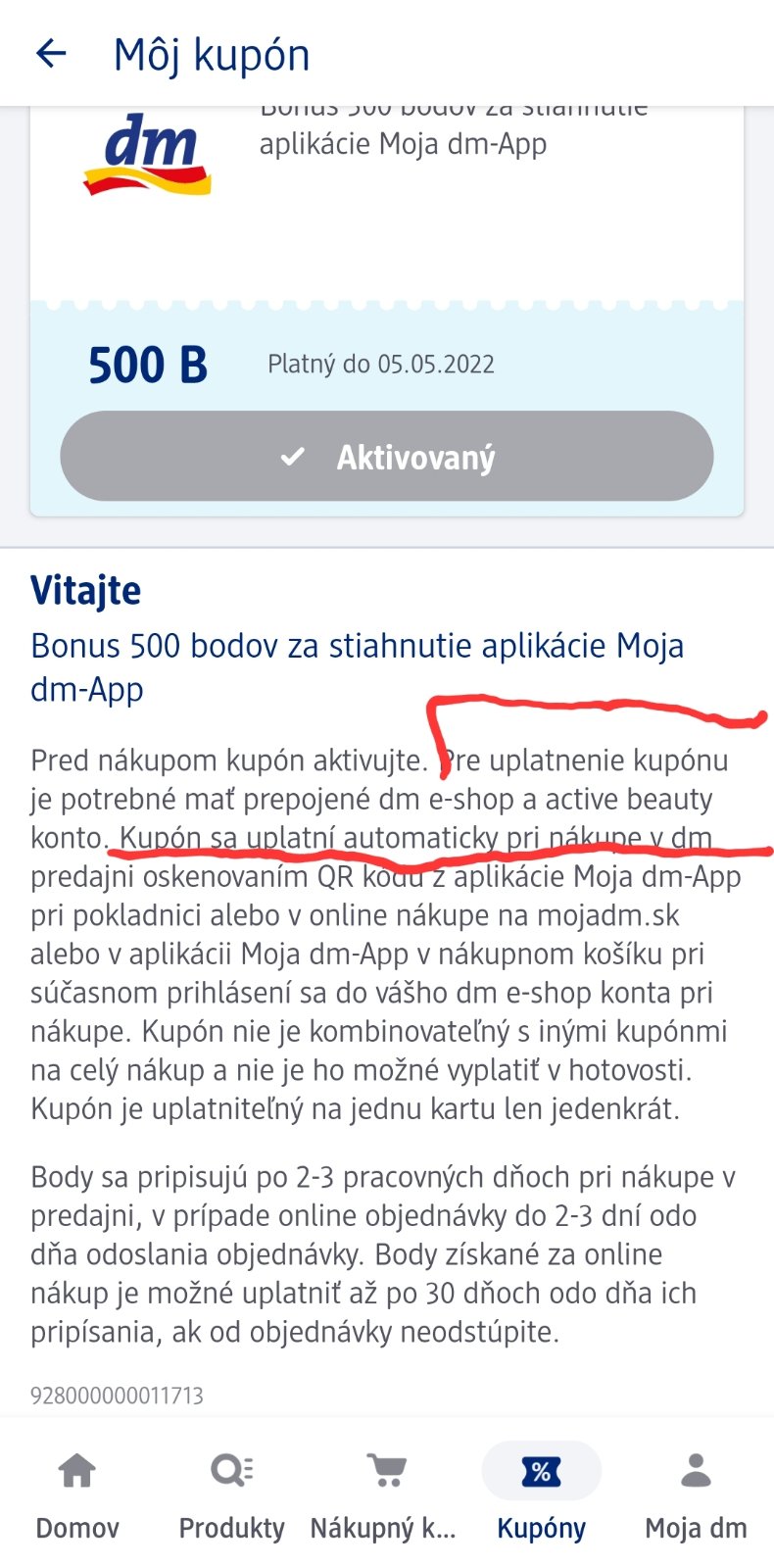 Ja dm aplikáciu používam dlho. Veľa € ušetrím cez kupóny. Len neviem ako sa dopracovať bk tým 500 bodom.. Mám tam Qr kód ten mám použiť pri nákupe v DM?