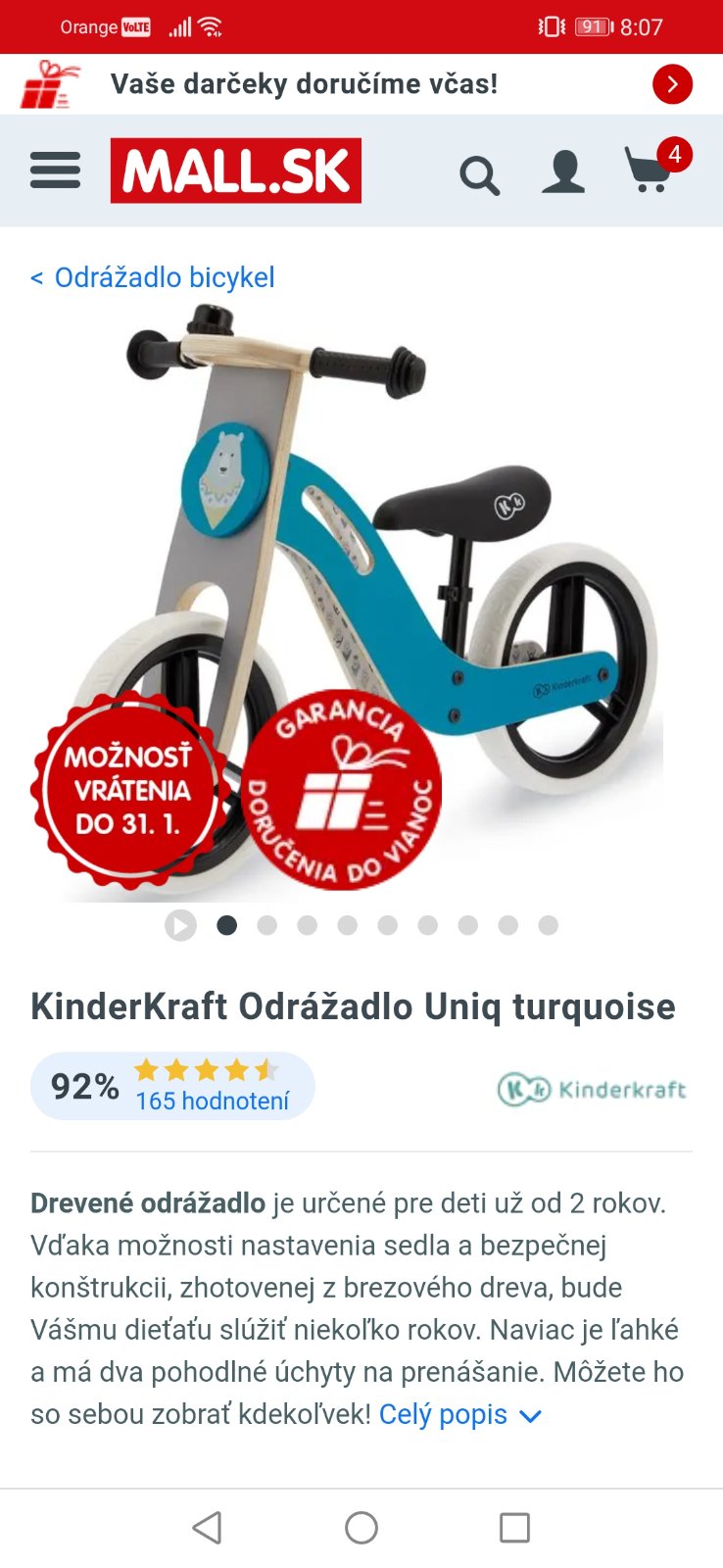 Ahojte. Zaujalo ma toto odrazadlo pre skoro 2 rocneho chlapceka. Na Jar bude mat 2.Je dost kvalitné? Chcela som frstbike. Len tam je od 3 rokov a aj ta cena je dosť vysoká. Ďakujem