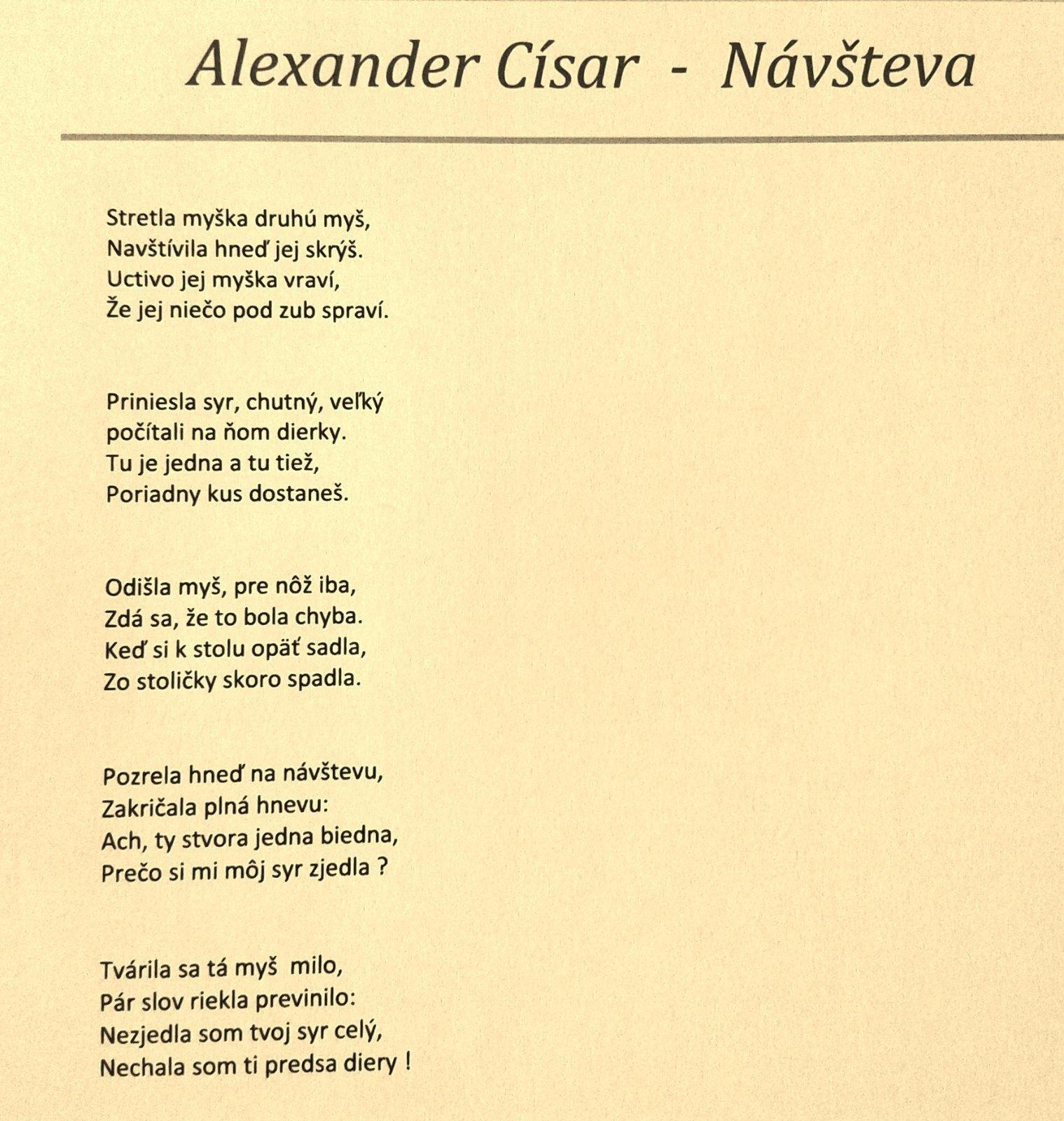 mamicky, syn prvak si ma vybrat basnicku do skoly 4 stvorversia, napr. z polepetka, len ja nemam nic take doma, viete mi pomoct tie co mate? odfotit nejaku vhodnu basnicku aj s autorom? dakujem