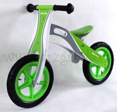 Zaujímavé odrážadlo KING na nafukovacích kolesách. Konštrukcia odrážadla je drevená.Je ideálne na prvú výučbu udržiavania rovnováhy, vďaka čomu sa dieťa rýchlo naučí používať bicykel bez potreby pomocných koliesok.