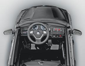 Autíčko BMW X6 má exkluzívny vzhľad, otváracie dvere, originálne znaky a logo BMW na kapotách, volante, kvalitné materiály a spracovanie, širokú sedačku, gumový pás na kolesách – čo Vám zabezpečí tichú jazdu! Autíčko je taktiež vybavené svietiacími svetlami a podsvietenou palubovkou. 2 tlačidlá pre efektné húkačku, modernú muziku a pesničky, prípojka pre MP3, otočný spínač pre vypnutie alebo ovládanie hlasitosti zvuku a efektov. Digitálny ukazovateľ stavu a nabitia batérií, pre bezpečnosť dieťaťa je na sedačke nastaviteľný bezpečnostný pás.