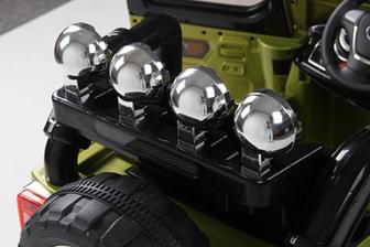 Otváracie dvere, zvukové efekty, indikátor stavu batérie , 2 x motor, s náhonom oboch zadných kolies, 2 rýchlosťami vpred a 2 vzad, vďaka tejto výbave je vhodný aj pre jazdu v teréne .