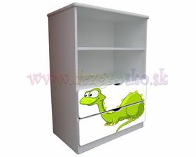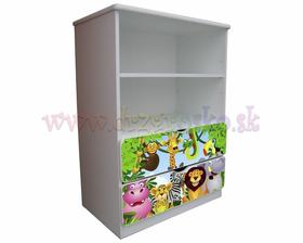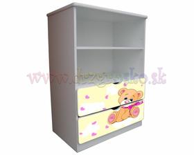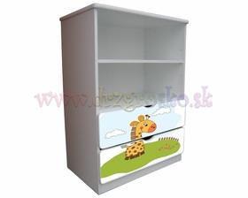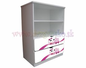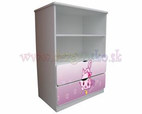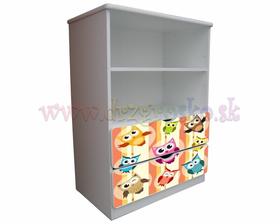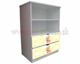 Spodnú časť skrine tvoria šuplíky, vrchná časť je tvorená policami