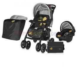 Kočik RIO SET - Tlačidlo za rýchle poskladanie kočíka jednou rukou - Dva odkladacie pulty na fľaše - Polohovateľná opierka chrbta - Polohovateľná opierka nožičiek - Otočné predné kolesá - Veľký nákupný košík V cene: Kočík,Autosedačka, Taška, Nánožník