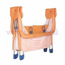 horný okraj ako aj kovové časti je po celom obvode potiahnutý mäkkým poťahom,ktorý chráni dieťa pred údermi,