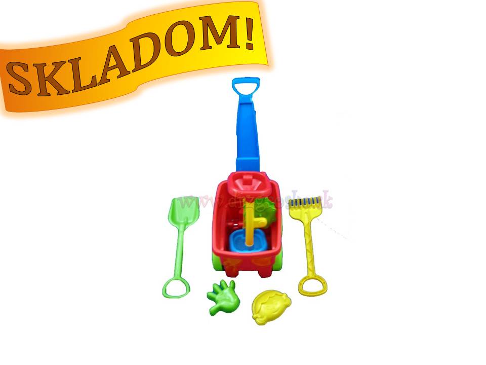 Vozík s formičkami a lopatkami, cena 11,20€, viac info v našom e-shope www.drzgrosko.sk