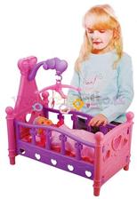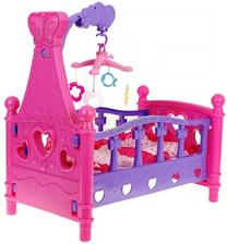 Krásne spracovaná postieľka pre bábiky. Sýte farby, príjemné tvary, paplónik a kolotoč.