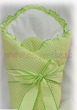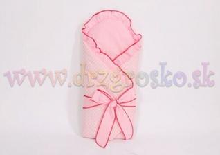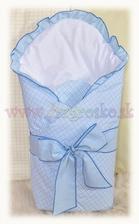 pohodlná detská zavinovačka,zapínanie na suchý zips spolu so stuhou,mäkká spevnená výplň,rozmer: 75 x 75 cm.Materiál: 100% bavlna