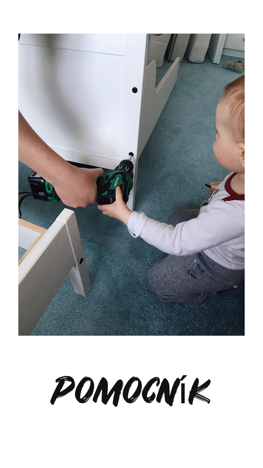 Samozrejme, že musel tatinovi pomáhať s montážou jeho novej postele do detskej izby 😍