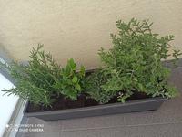 Moja bylinkova záhradka na balkóne(rukola, oregano, majoran, tymian, rozmarin, petržlenová vňať) , ešte mam jednu u rodičov (kde je salvia, medovka, Mäta, lubovnik, rozmarin....)