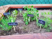 my sme sa minulý rok na jeseň sťahovali do iného domu, takže okrem prerábky interiéru zakladáme odznova všetko... bylinky sme si s mojou princeznou začali pestovať zo semienok, korienky ligurčeka a šalvie nás čakajú u babky...doma nám zatiaľ na parapete rastie pažítka, mäta, bazalka, medovka...do záhrady ešte budeme vysádzať majorán, tymián, levanduľu, zeler...a na hriadke v záhrade nám rastie cibuľa, čiže používam aj mladú cibuľovú vňať, tiež na hriadke máme zasadenú kučeravú petržlenovú vňať a samotný petržlen...