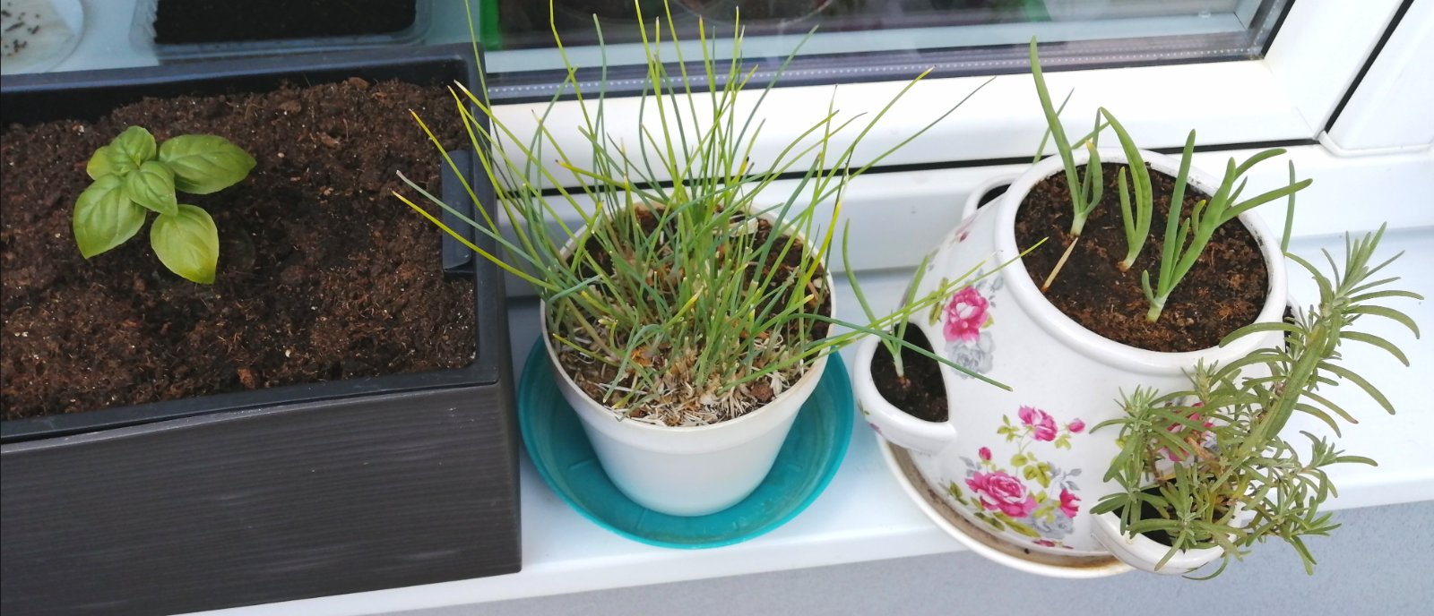 U nás pažítka, rozmarín, bazalka a jarná cibuľka... všetko zatiaľ len v začiatkoch ☺️