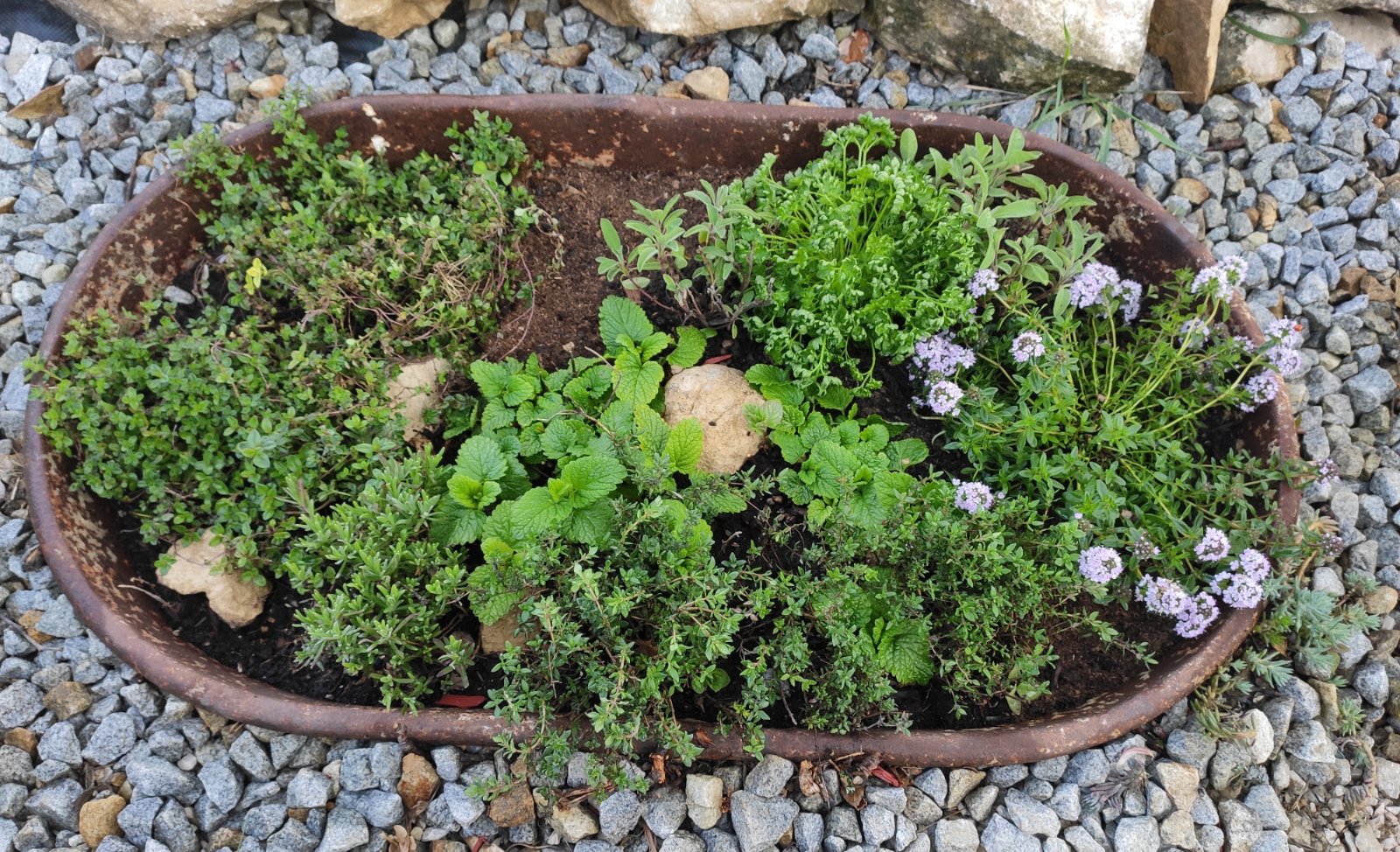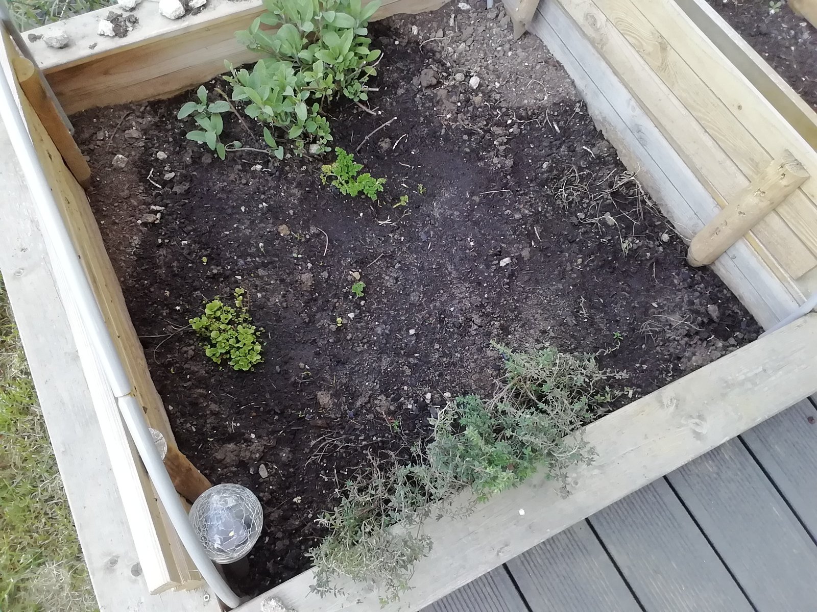 Mne moju doriadil n'as no y clen rodiny, psik, v zime. Pomaly sa spamatava. Medzi tymianom à salviou Bola hrrrrba petrzlenu na vnat. A pokrajochbolo oregano, nanovopomalycky vylieza a oproti nemu materia duska, ta to uz asi nerozchodi :( este oproti teraske mam zahon s levandulou a rozmarinom. Bobkac taktiez nesmie chybat.
