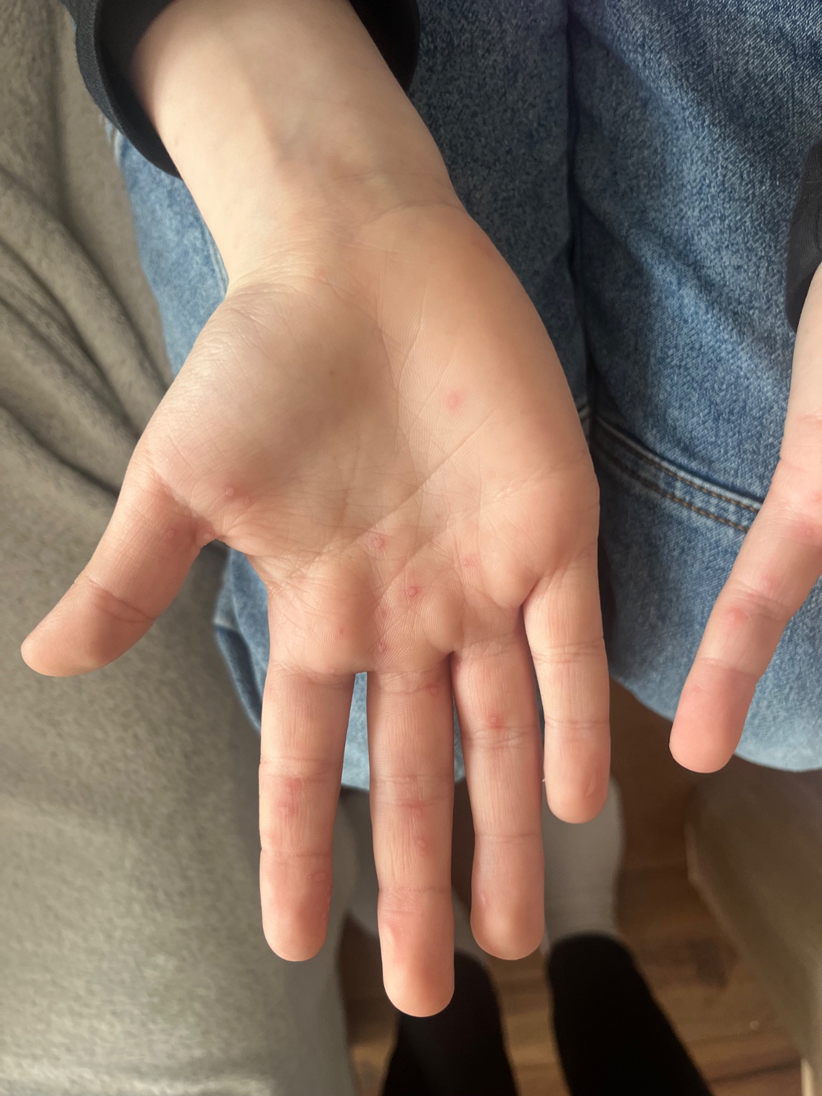 Ja by som skor povedala, ze ruky, nohy, usta. Pozor, vysoko infekcne. Dcera nemala v ustach, na nohach skoro nic, len ruky. Po par tyzdnoch jej zliezli nechty.
