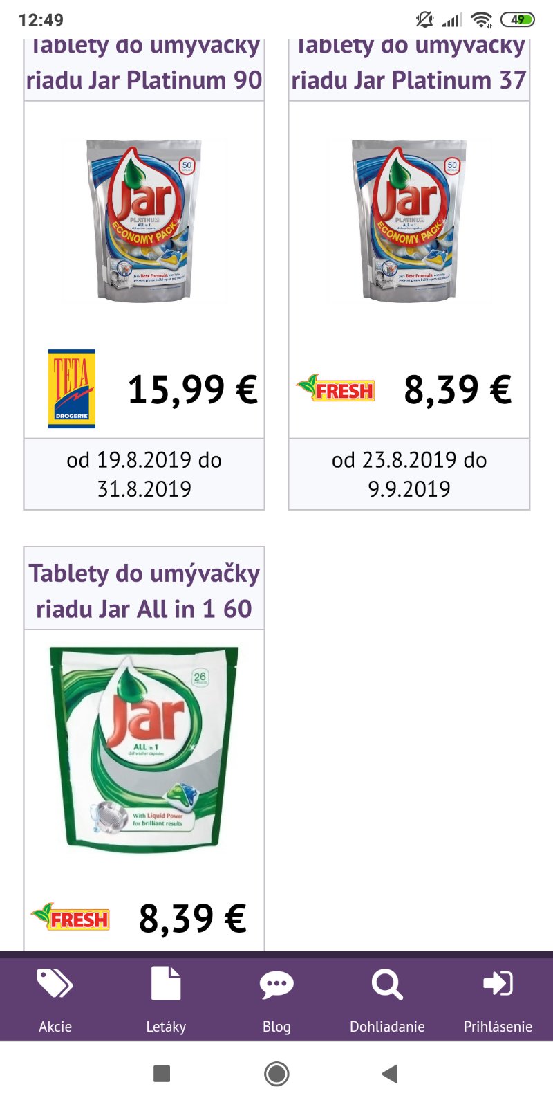Prosím vás, neviete či sú niekde v akcii kapsule do umývačky riadu JAR? Najlepšie platinum?
