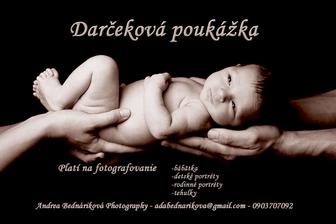 Ahojte,ak nahodou neviete ,ze co darovat vasim blizkym ,rodine a kamaratom na ich velky sviatok ,vyrocie ,ci Vianoce ,tak tu je Darcekova poukazka na fotenie v atelieri alebo exterieri.Urcite potesi kazdeho🙂))