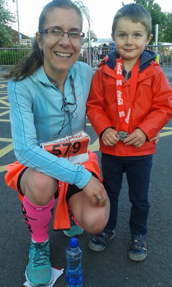 Krásny športový zážitok - celou trasou krásne výhľady, pekná trasa s príjemnými hupáčikmi... bolo krásne bežať usekmi, ktoré som poznala - Halfpenny gate rd .... a už dni predtým boli popri ceste informačné žlté tabule ohladom cestných uzavierok kvôli preteku, tak každý den čo sme tade šli autom, sa mi závod stale pripomínal 🙂
