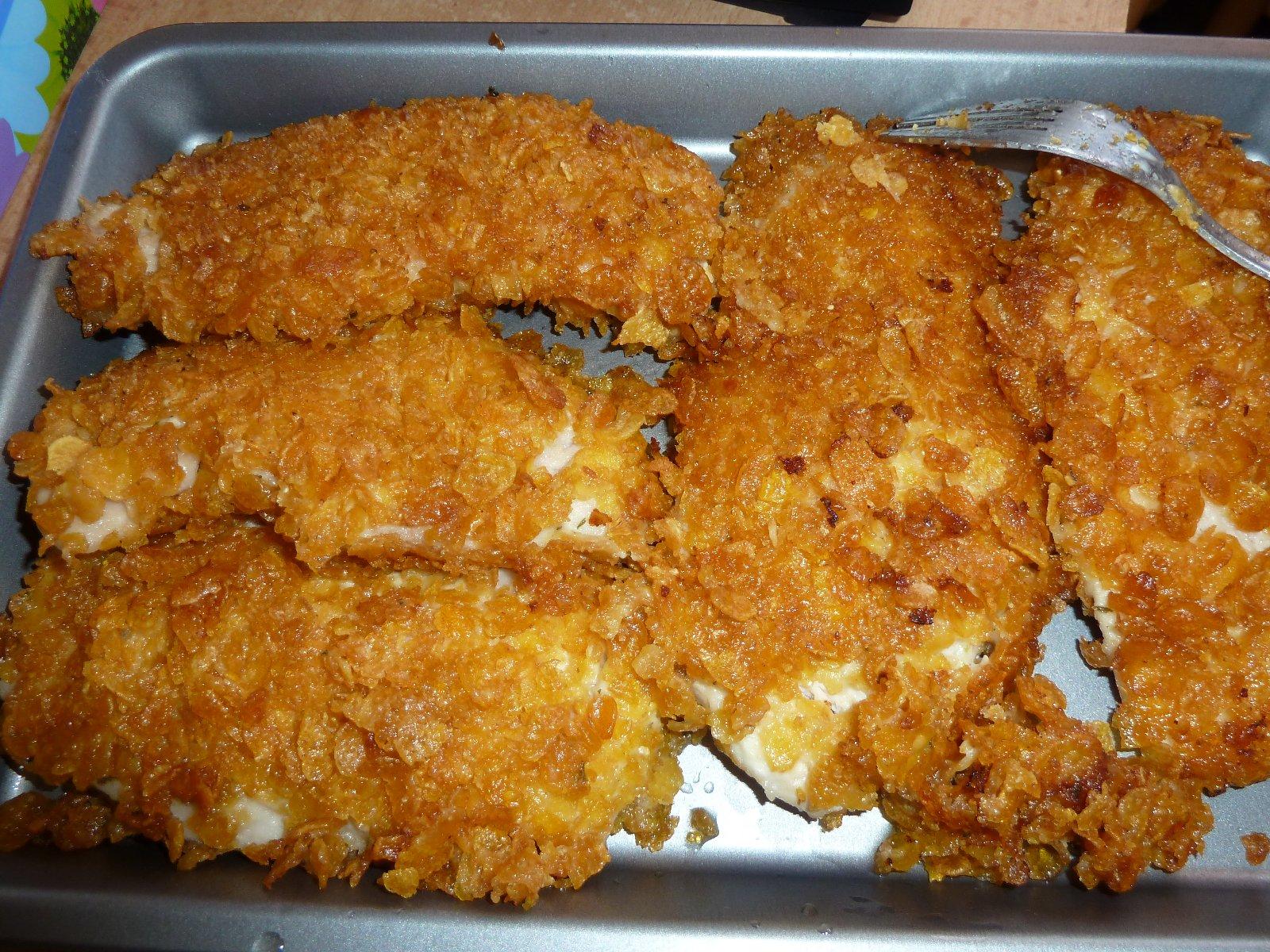 kuracie rezne obalene v kukuricnych lupienkoch, miesto struhanky som dala lupienky a vyprazila