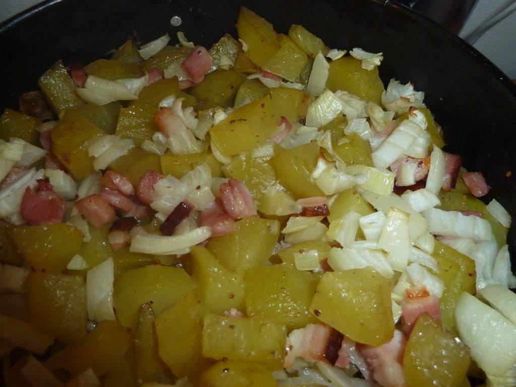 zapekane zemiaky s cibulou a slaninkou