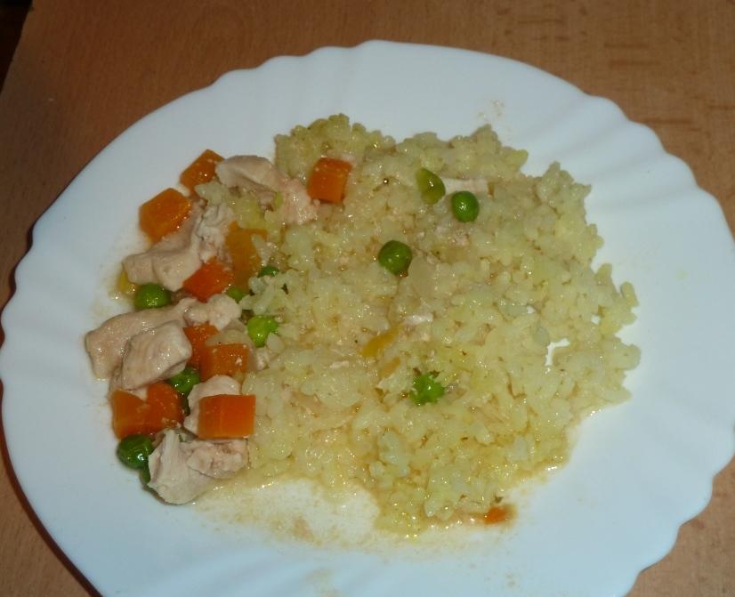kuracie na hrasku a mrkvicke s ryzou
