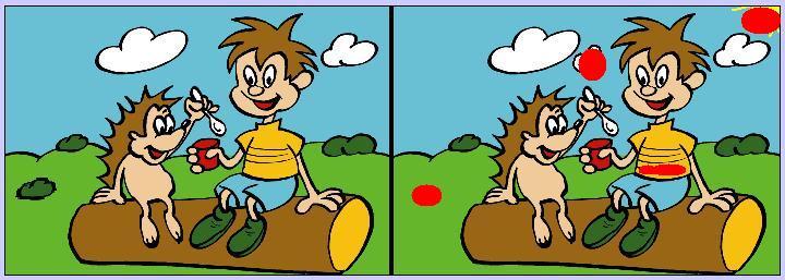 Oblak chyba, pruhy na tričku, obláčik trávy,slnko...