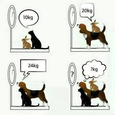 🐱 7kg, 🐰 3kg,🐶 17kg, spolu 27kg😉