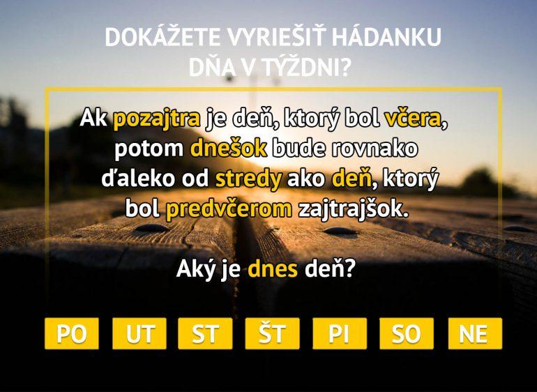 😀 dobrovoľne priznávam, som z toho jeleň 🙂 myslím, že sa všetky zhodneme, že správna odpoveď je pondelok a to čo si na nás vymysleli autori hádanky, nech si nechajú 😀 😀