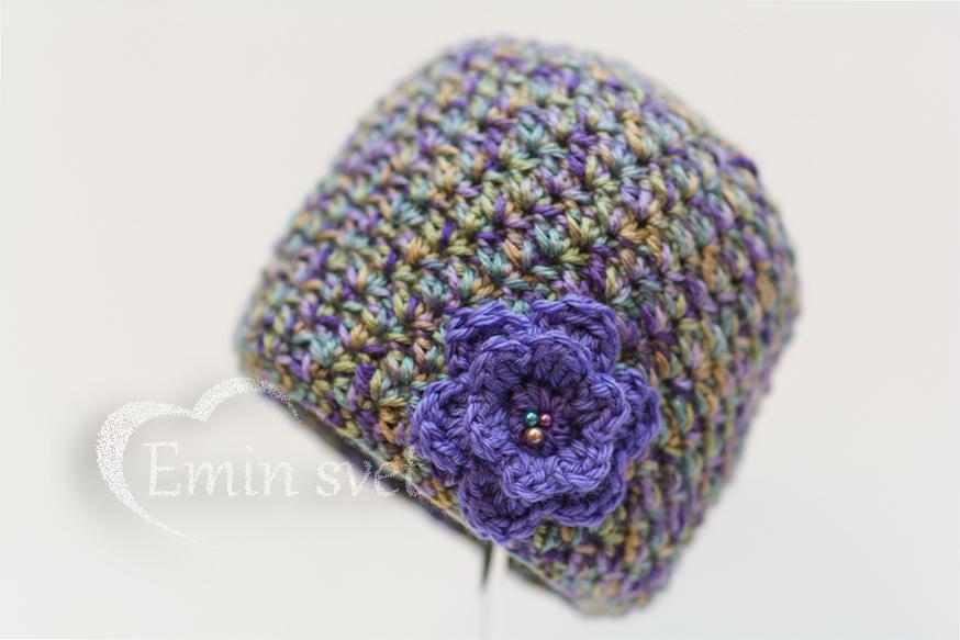 Čiapočka s fialovým kvetom - obv. 49-51 cm - na želanie