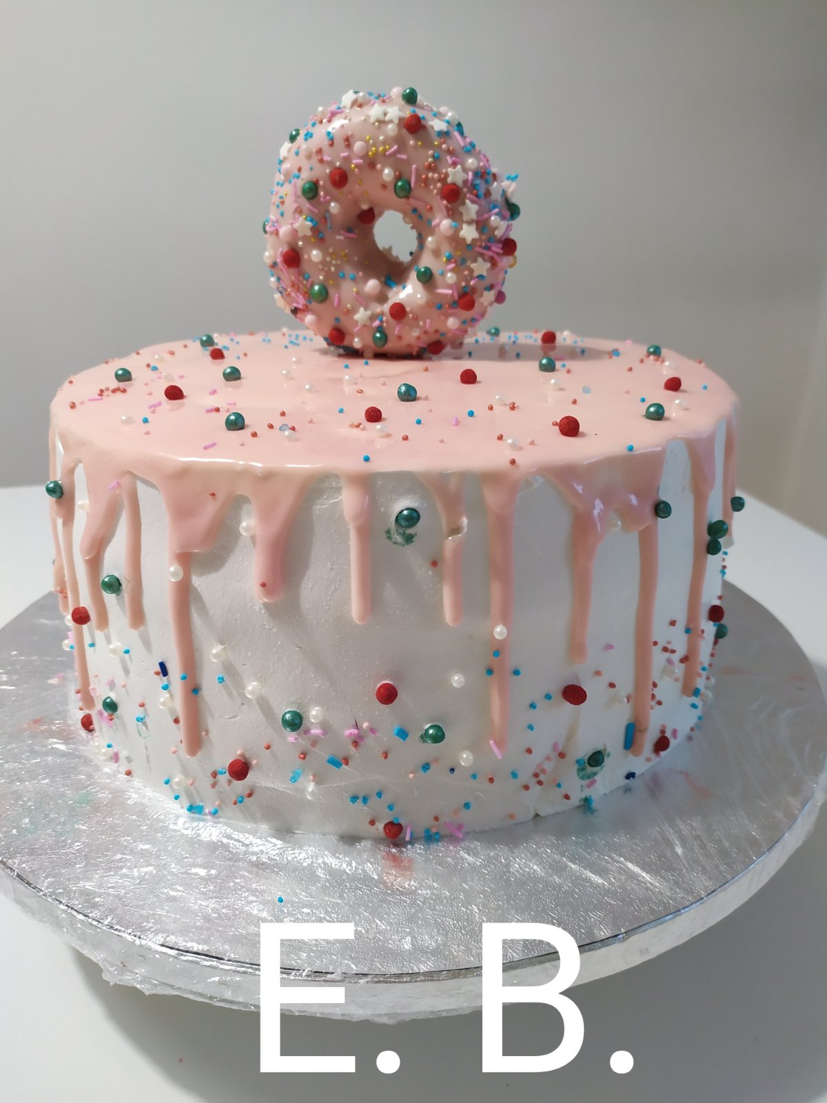 Grankový korpus, džem - čierne ríbezle, Krém smotanovo - tvarohový + ovocie. 3 x plnená. 24 porcií. 3.80 kg.