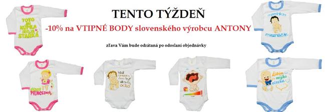 Tento týždeň máme v e-shope akciu na vtipné bodynká slovenského výrobcu Antony