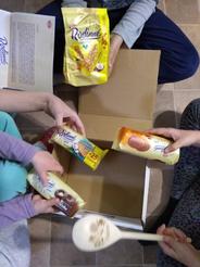 Nakoniec sme začali rozbaľovať,veru aj sme sa zasmiali. Deti si užili rozbaľovanie a hneď spoznali výrobky (videli v reklame v TV). Mali veľkú radosť z omaľovánky aj plyšákov a, samozrejme, zo šuniek a párkov.