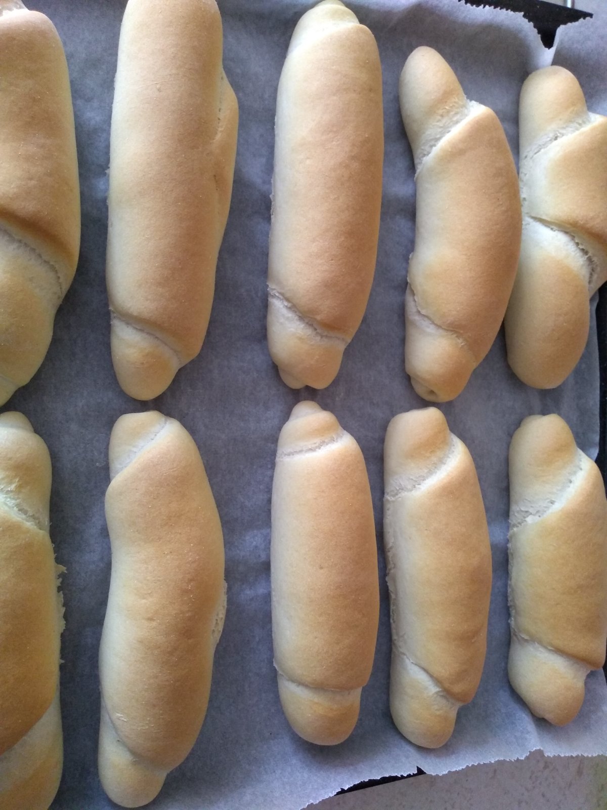 330 ml vlažnej vody, 2čl.cukor, kocka droždia, 3pl olej, 700g. hl.muky preosiatej, 3čl soľ, cca 4uvarene zemiaky.Vypracujeme cesto,necháme podkysnúť cca po 20min.premiesime -opakujeme 3x. Pečieme pri 200stup.cca 40min. Ja dávam papier na pečenie a pečiem v starom pekáči. Predtým ako dám do rúry jemne rukou potriem vodou. Aj horúci hneď po upečení.