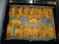 Ja robievam také pizza buchtičky, rozváľkané lístkové cesto rozdelím na 8 obdlžníkov, potriem kečupom, posypem oreganom, poukladám šunku alebo salámu, strúhaný syr, olivy, kukuricu (podľa chuti), zabalené to potriem vajíčkom a posypem sezamom a pečiem. ja to vždy robievam keď máme ísť niekam na výlet, tak na cestu.