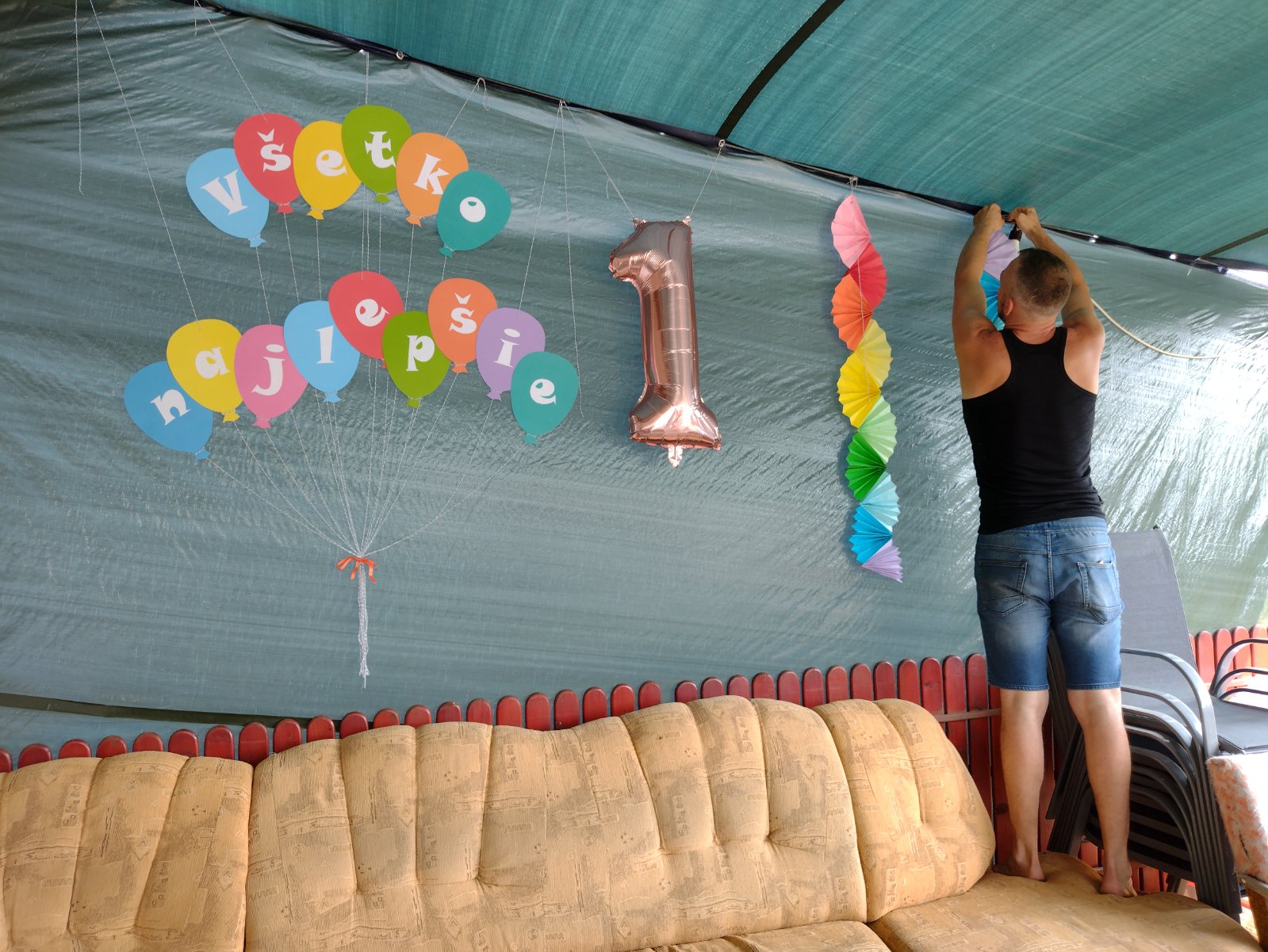 Handmade výzdoba - dúhové girlandy vyrobila 7,5 ročná krstná dcérka