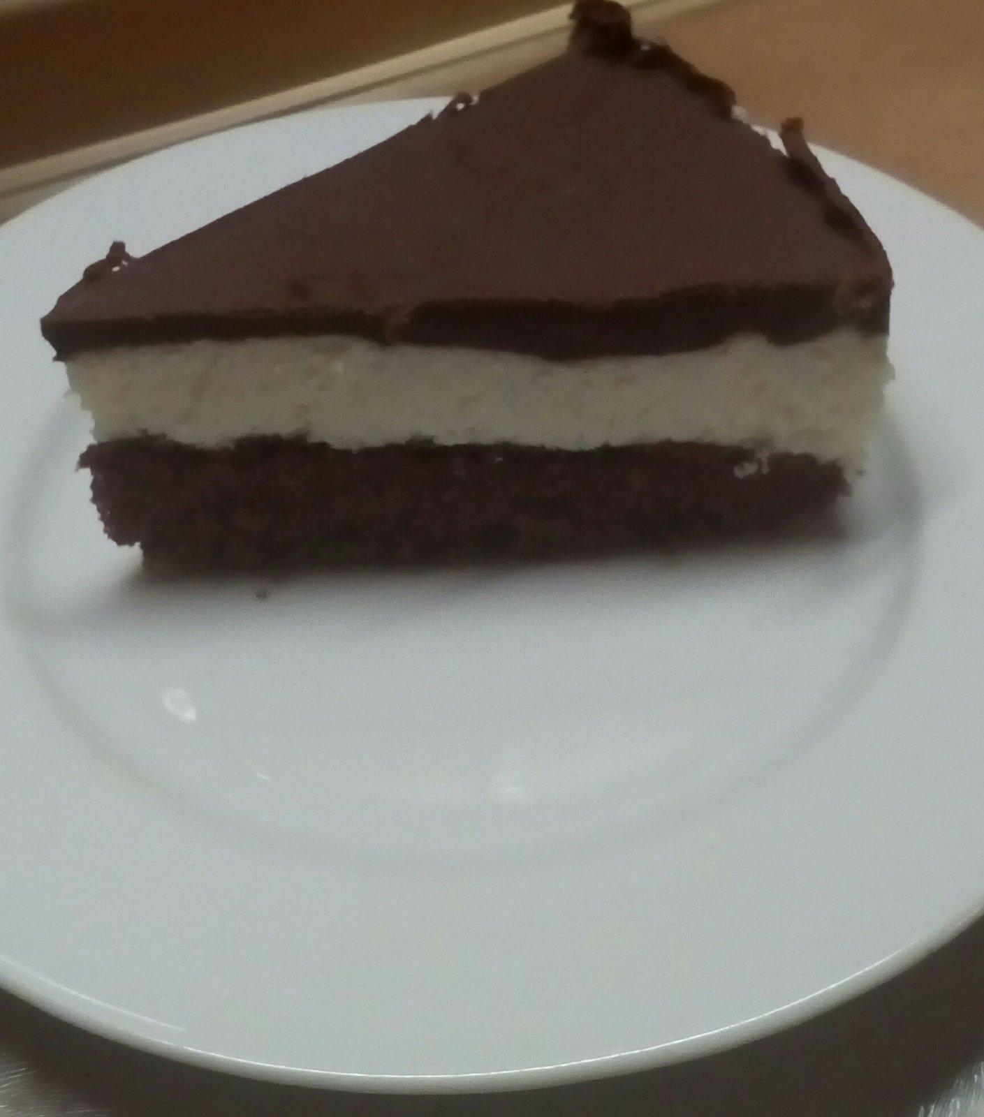 vaječný žĺtok 4 ks • cukor práškový 75 g Žĺtka a cukor vyšľaháme do peny. vaječný bielok 4 ks Z vaječných bielkov vyšľaháme tuhý sneh. kakao - prášok 10 g • olej slnečnicový 1 PL K žĺtkom vmiešame kakao a olej. múka polohrubá 75 g • jedlá sóda (sóda bikarbóna) ¼ ČL V múke rozmiešame sódu bikarbónu ( alebo kypriaci prášok) a postupne vmiešame do cesta. Jemne vmiešame sneh z vaječných bielkov. maslo • múka polohrubá Formu na pečenie (priemer 28 cm) vymastíme maslom a vysypeme múkou. Vlejeme cesto. Pečieme 10 min. pri teplote 180°C. maslo 250 g • cukor práškový 125 g Maslo, zohriate na izbovú teplotu, vyšľaháme dohladka s cukrom. tvaroh jemný mäkký 500 g Pridáme tvaroh... ...a vyšľaháme. Tvarohovú plnku navrstvíme na vychladený korpus a vyhladíme. Dáme do chladničky na 2 hodiny tuhnúť. maslo 75 g • čokoláda na varenie 55% 150 g • olej slnečnicový 1 ČL Maslo rozpustíme s čokoládou v parnom kúpeli. Vmiešame olej. Čokoládovú polevu nalejeme na zákusok. Poleva sa krásne leje, netreba ju rozotierať, stačí ľahko ponakláňať formu. Necháme stuhnúť v chlade ďalšie 2 hodiny. Po celkových štyroch hodinách chladnutia je možné dezert krájať a servírovať, avšak odporúčame jeho chladnutie po dobu 24 hodín.