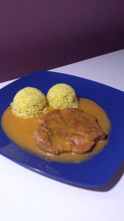 Platky masa naklepem medzi foliou. Plátky mäsa hojne orascujem drvenou rascou,trosku posolím a opaprikujem... Vsetky koreniny, rukou zatlacim do masa a nakoniec obalim v hladkej muke tak ako rezne. Do hrnca dam 6 PL oleja a rozohrejem ho. Na rozohriatom oleji, opeciem maso z obidvoch stran, tak aby sa mi vytvorila tmavozlata kôrka na mase..Plátky vyberiem a dám ich bokom.. . Vo vypeku orestujem nakrajanu cibulu,dam spiatky mäso a zalejem vývarom tak aby bolo takmer ponorene..Pridala som do omáčky za malú lyžičku vegety Privediem k varu,stisim plameň a dusím domäkka.. Ak chcete môžete a nemusíte zahustiť (voda+múka)..Ja som trošku zahustila.. Kedze som dala drvenu rascu..pre malého sú to smeti,tak som omáčku mixla..inak to tak nerobím 😂😂😂