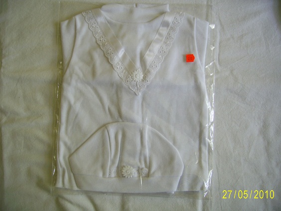 Ponúkam kojenecké a detské vecičky od 0 – 1,5 roka.Veľkosti 56 – 86. Body do veľkosti 98. Slovenský výrobok.100% bavlna. Náplne do periniek,košieľky,dupačky,body, . . . V prípade záujmu ma kontaktujte cez web.Ďakujem.