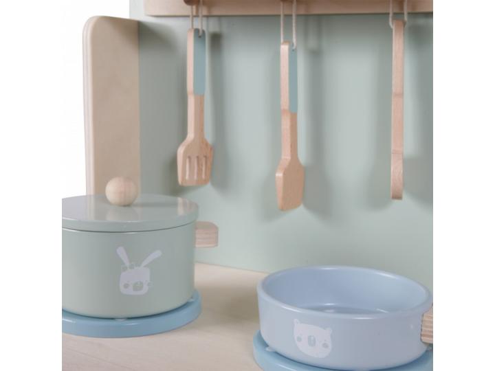 Váš malý šéfkuchár môže piecť a vyprážať v tejto kompletnej drevenej kuchyni Little Dutch. Kuchynka obsahuje hodiny, veľa riadu, drez, otváraciu rúru s magnetkou, kohútik. Kuchynka je dodávaná s extra nástavcami (6 cm), ktoré možno pripevniť pod nohy kuchyne, takže váš malý šéfkuchár si môže vychutnať potešenie z varenia mnoho rokov.