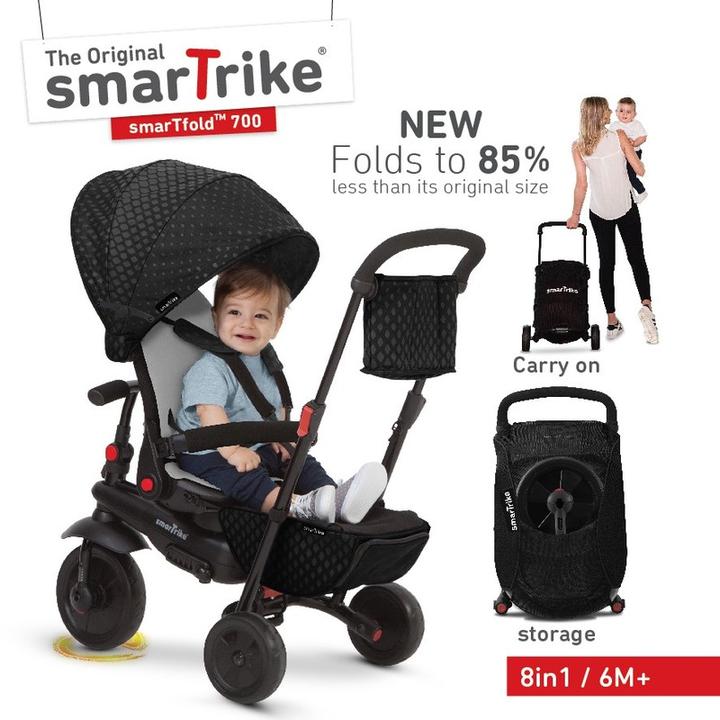 Smart Trike predstavuje revolučnú novinku - plne sklápaciu trojkolku s otočným sedadlom o 180 stupňov - smerom k rodičom alebo dopredu. Je určená pre jednoduché skladanie a kompaktné skladovanie. Žiadna komplikácia - nie sú potrebné žiadne nástroje. Žiadna demontáž. Len pár kliknutí. Skvelá na cestovanie - jednoducho ju dáte do auta i na palubu lietadla. SMART TRIKE je celosvetovo najpredávanejšia a naviac oceňovaná značka detských trojkoliek.