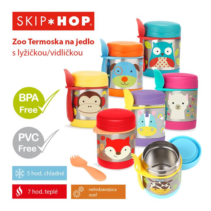 Značka Skip hop predstavuje moderný dizajn výrobkov ako aj funkčnosť. Bestsellerom sú Zoo termosky na jedlo s lyžičkou alebo vidličkou.