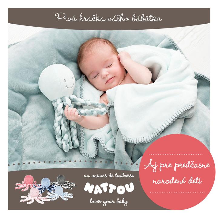 Prvá hračka Vášho bábätka chobotnička PIU PIU Nattou z kolekcie Lapidou.
