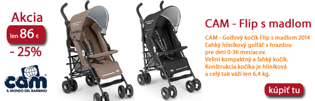 Golfový kočík CAM FLIP 2014 - teraz len za 86 EUR. V cene je aj madlo . Na výber 3 farby. http://www.market24.sk/najdene-produkty/cam flip/ Do ponuky sme zaradili novú značku Moon - Ľahké štvorkolesové kočíky so spojenou rukoväťou FLAC a KISS. http://www.market24.sk/moon/