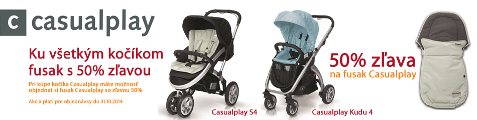 Pri objednaní ľubovoľného setu kočíka fusak CASUALPLAY zdarma. Na výber 4 farby fusakov. Pri objednaní športového kočíka (S4, Kudu, Kudu 4, Avant alebo Livi) - možnosť doobjednať fusak s 50% zľavou. www.market24.sk/kociky-casualplay/