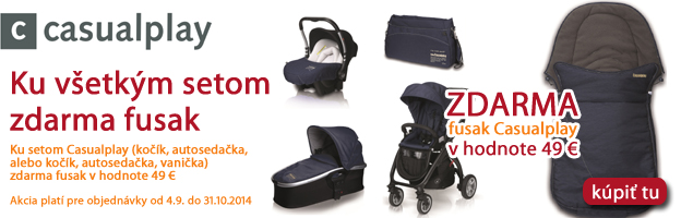 Pri objednaní ľubovoľného setu kočíka fusak CASUALPLAY zdarma. Na výber 4 farby fusakov. Pri objednaní športového kočíka (S4, Kudu, Kudu 4, Avant alebo Livi) - možnosť doobjednať fusak s 50% zľavou. www.market24.sk/kociky-casualplay/