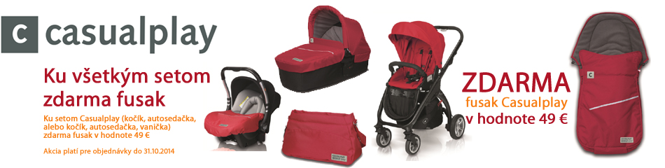 Pri objednaní ľubovoľného setu kočíka fusak CASUALPLAY zdarma. Na výber 4 farby fusakov. Pri objednaní športového kočíka (S4, Kudu, Kudu 4, Avant alebo Livi) - možnosť doobjednať fusak s 50% zľavou. www.market24.sk/kociky-casualplay/