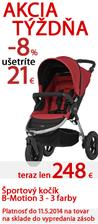 V novej akcii týždňa ušetríte až do 28%: http://www.market24.sk/akcia-tyzdna/ Britax B-Motion, Avent fľaška, First Bike odrážadlá, Bright Starts ležadlá, fusaky Kaiser Iglu či lyžičky od Vital Baby. Väčšina tovaru skladom. Skladom u nás viac ako 2500 tovarov, vyberajte a do druhého pracovného dňa ho môžete mať doma: http://www.market24.sk/na-sklade/