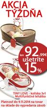 V akcii týždňa ušetríte až do 45% www.market24.sk/akcia-tyzdna/ Multifunkčné lehátko Tiny Love, Bontempi - Baby hracia konzola, Bright Starts - Chodítko CARS a Hracia Deka podporujúca vývoj s hrazdou, Jedálenská súprava na cesty Fisher Price, John - Pršiplášť pončo Minnie a Lietadlá. Väčšina tovaru skladom. Skladom u nás viac ako 3000 tovarov, vyberajte a do druhého pracovného dňa ho môžete mať doma: http://www.market24.sk/na-sklade/