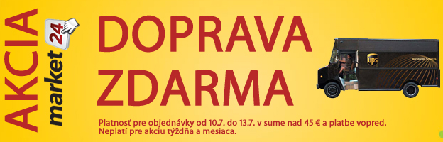 Ešte dnes doprava zdarma pri platbe vopred - platí pre objednávky nad 45 EUR (neplatí pre akciu týždňa a mesiaca). Vyberte si tovar, ktorý máme skladom: http://www.market24.sk/na-sklade/ a už v utorok ho môžete mať doma. U nás nájdete detský tovar, športové potreby, knihy i potreby do domácnosti: www.market24.sk